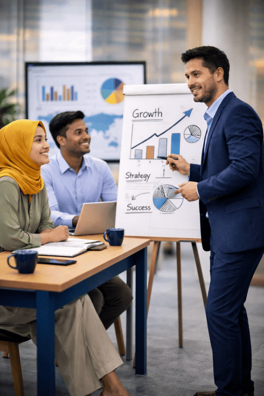 The Entrepreneurship Support Program provides structured advisory services, strategic mentorship, and growth-oriented resources designed to help businesses strengthen operations, scale effectively, and increase economic impact.